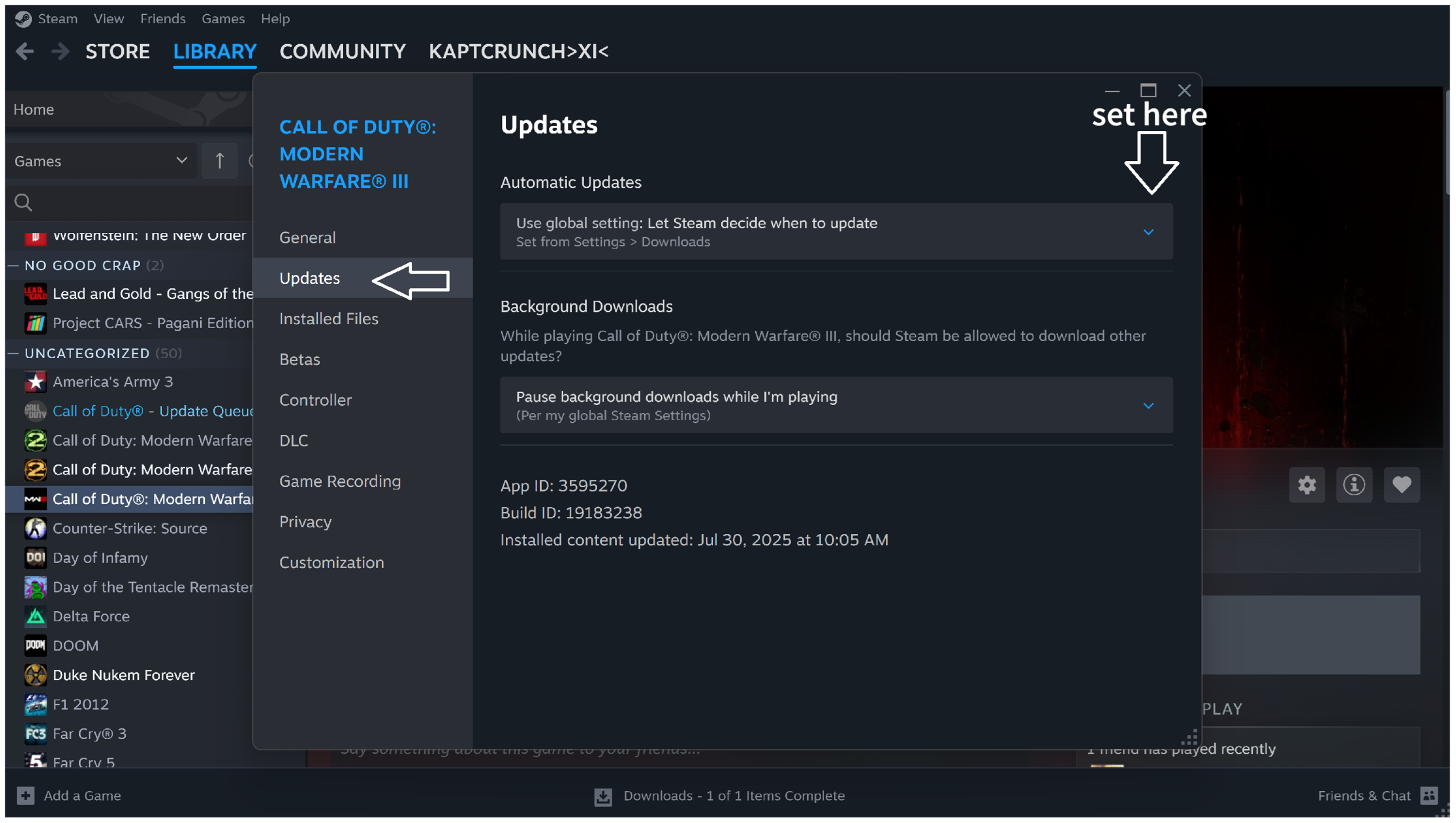 example open steam that right click game you see updates click it than pull down auto updates and select no -