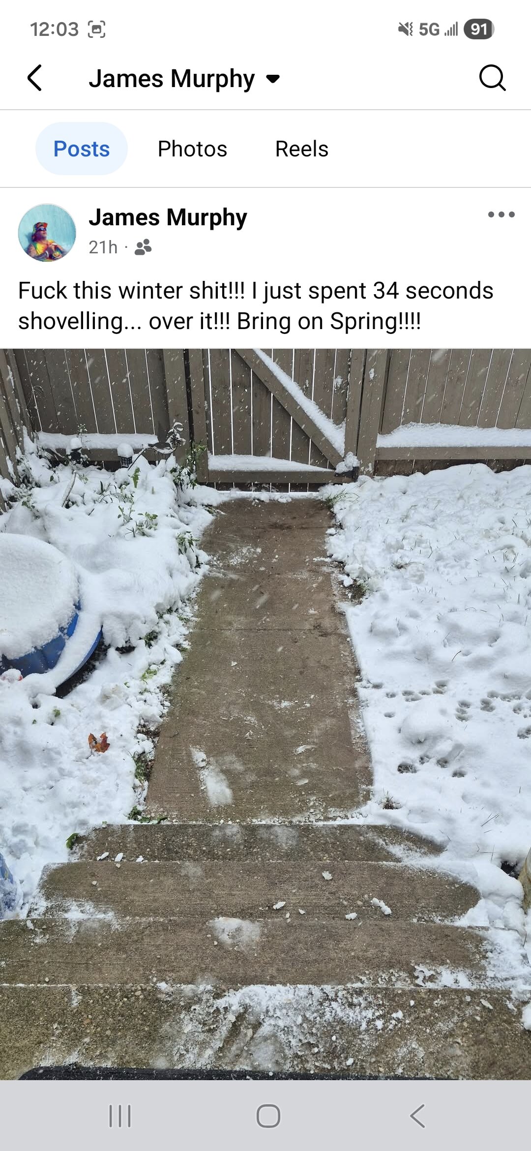 Had a few flurries last Thursday Mark but didn't stay. You can keep that shit up there. We got rain here all day.