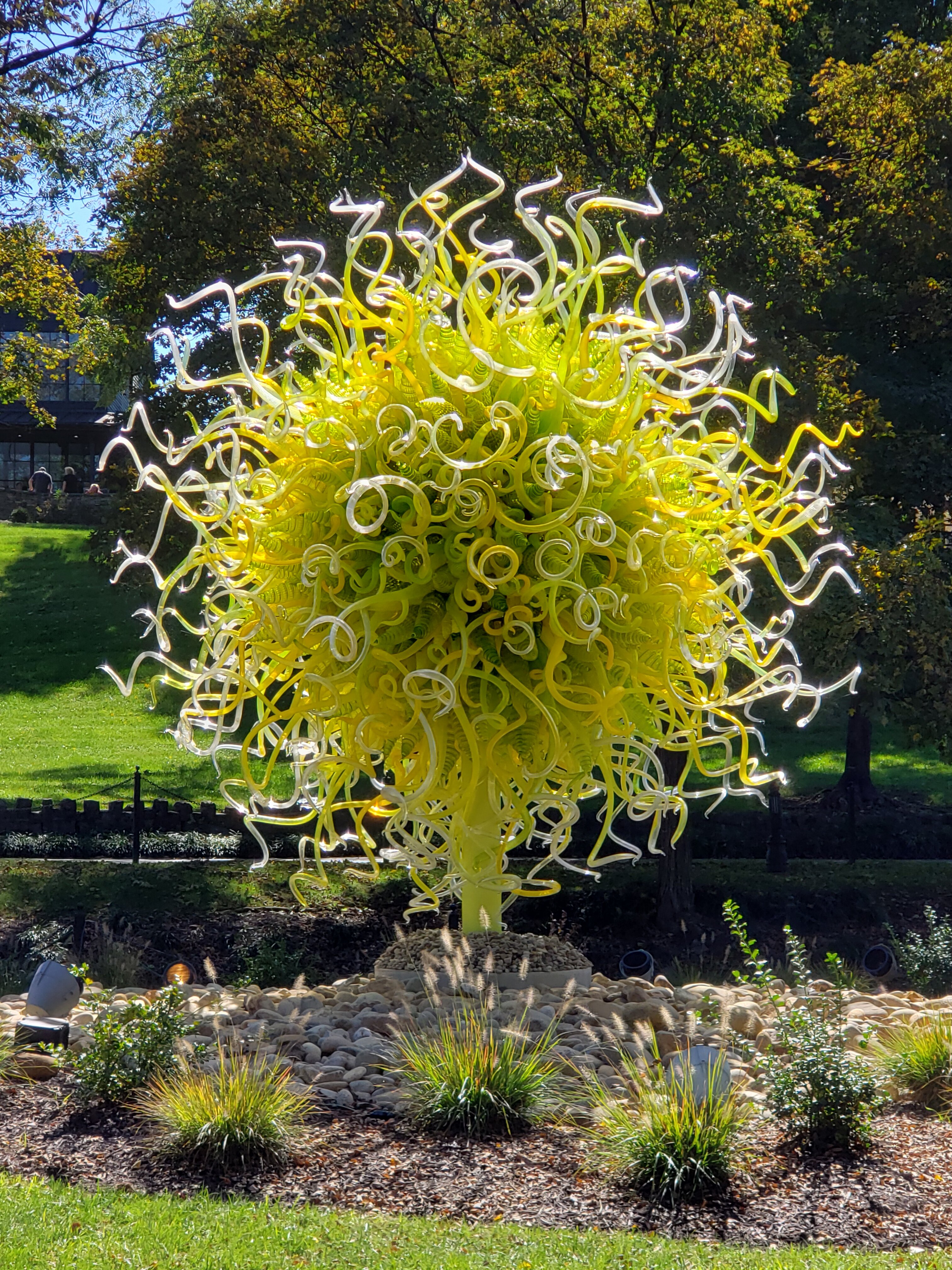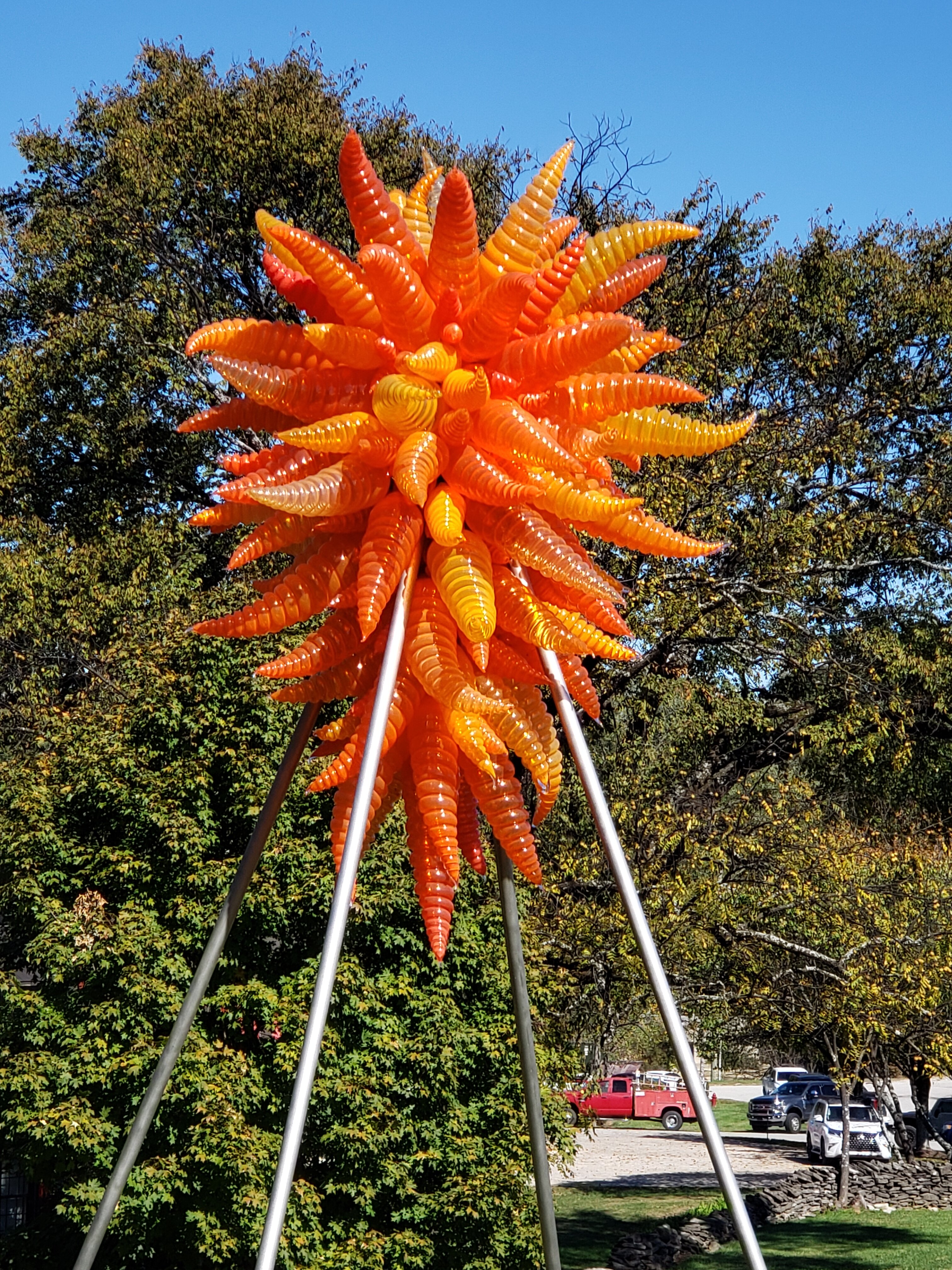 Went with a friend who asked me to go with her to see the exhibit. His work is placed throughout both inside and out. Bought a few souvenirs... Surprised the intricate blown glass withstands the weather.