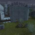 It's a medieval castle. Day version is larger than the night version and the flag positions change in each version.