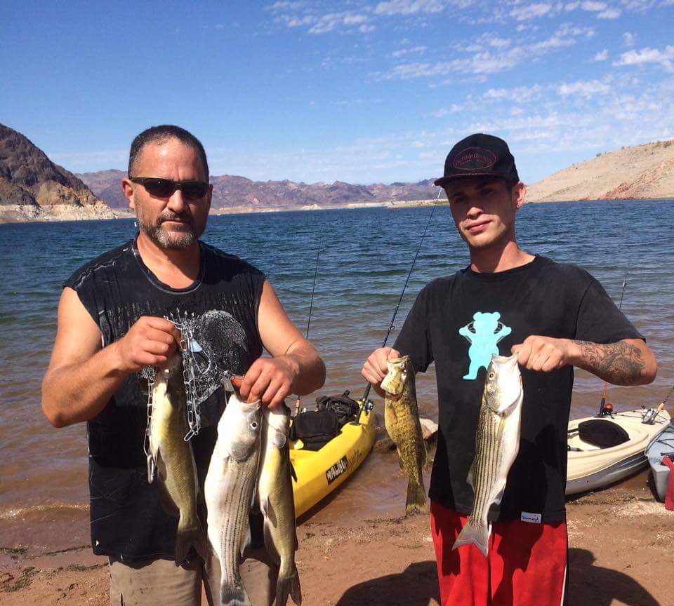 Kayak fishing at Lake Mead Nevada. Stripers, catfish and a smallmouth bass
