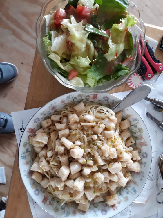 Gulf County scallop season opened this past Saturday! And well, damn if they are not just delicious! Sweet bay scallops OMG! very simple, a stick of lightly salted butter, an awesome little smacking of fresh crushed garlic, 1 fine diced jalapeno, 1/2 of a yellow onion....sauteed for just a few seconds 20 maybe..... add some white wine and some black fish seasoning and serve over angel hair pasta! also a salad with spicy Italian dressing, DAMNIT MAN! it's WELL WORTH all the pain staking crap to get to the end!2 points -