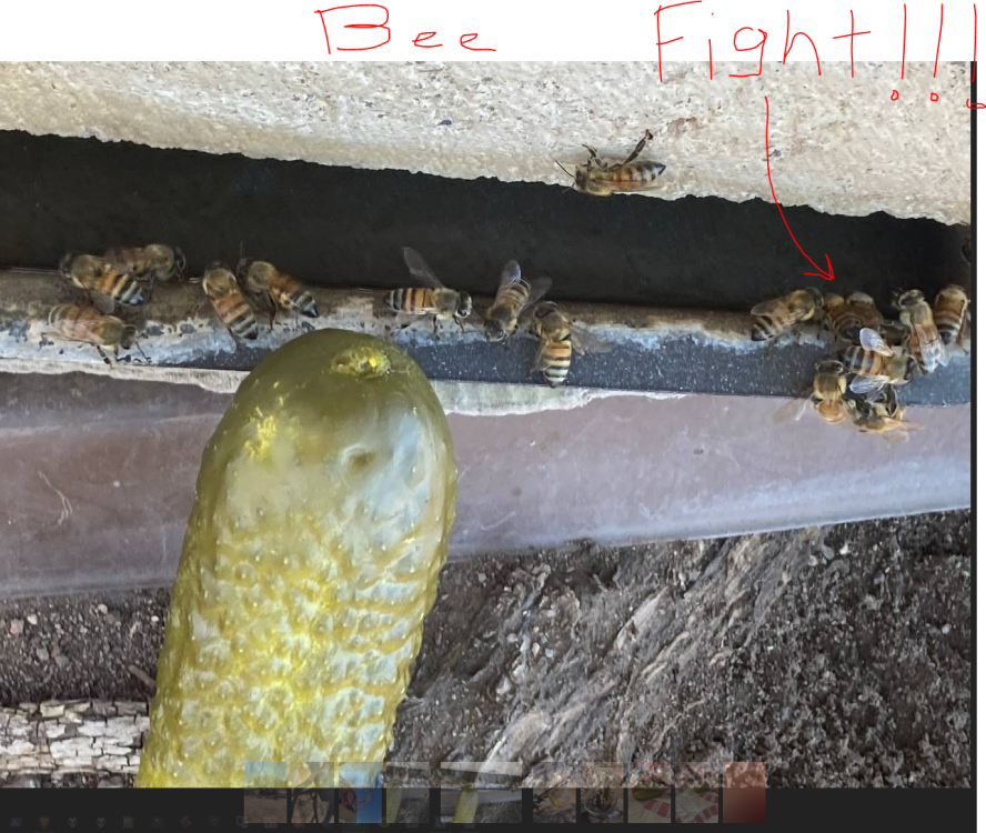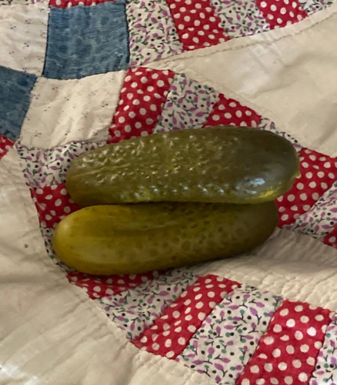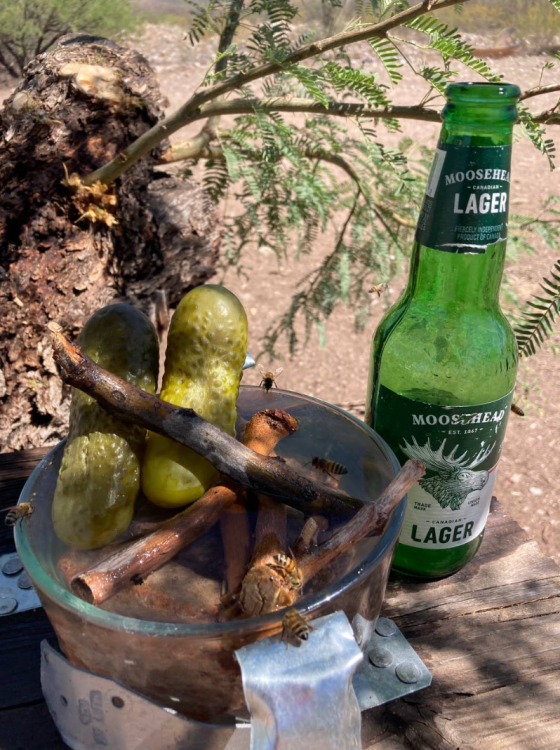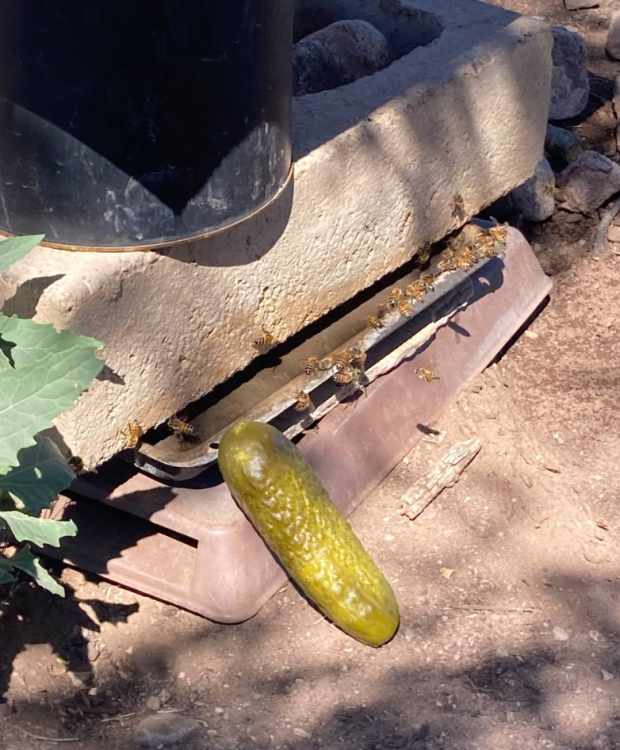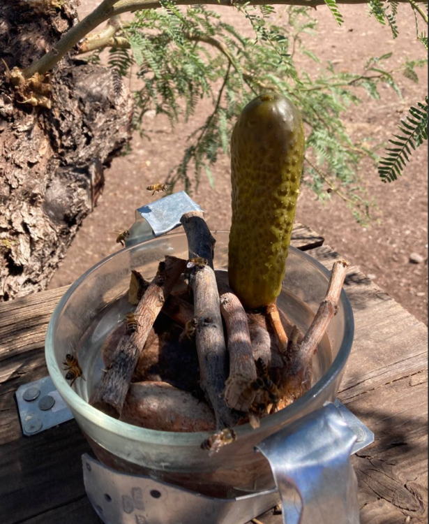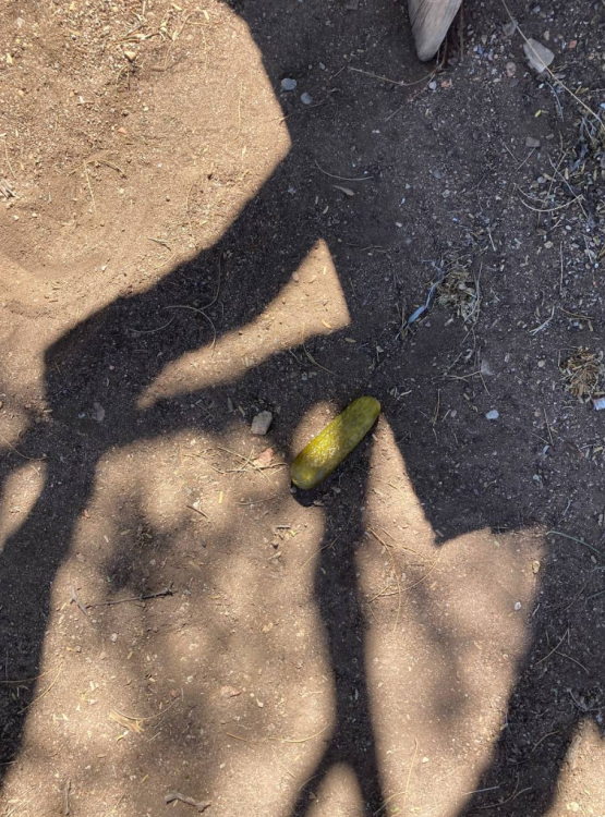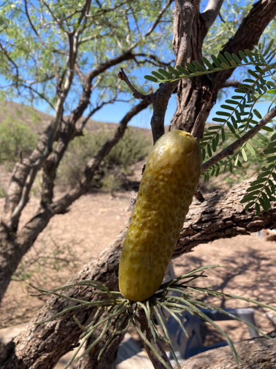 I got a surprise visit from @PickleRick last week after opening a jar of pickles owned by the Vlasic family and I just got the pictures developed. PicleleRick first wanted to check out the Killer Bees but they were a bit put off by his smell. PickleRick got to witness a Killer Bee gang attacking a bee from the wrong neighborhood. Before I knew it PickleRick jumped in the Bird bath the Bees took over that didn't have much water in it. Silly Pickle. We tried playing basketball but PickleRick was afraid of the net. PickeleRick needed to take a crap and after he wanted to climb a tree. You can hardly see him but he's right here. PickleRick was enjoying the view.... Then he fell.. or Jumped. He said he fell but I think he jumped. PickleRick then wanted to try climbing a Ocotillo bush. He's hanging on by a thorn here. For a pickle he has amazing grip. PickleRick said he don't smoke weed so I offered him an edible off a magic cactus. Technically I didn't lie to him. Besides how else did an edible bud get on a cactus... it's magic and a magician never tells his tricks. About twenty minutes later PickleRick was sitting on some Mistletoe reminiscing his sex life and after a bit asked if I have any beer. I told him no but I could go get some. He was instant so I went into town to get some. He asked for Canadian beer so I had a plan after telling him, 'I'll see what I can do". The Edible hadn't kicked in yet when I left and when I got back about an hour later I find @PickleRickin my bed with one of the Vlasic daughters doing the Dilly. I hung out and watched for a bit while taking some pictures. Seems the Kodak photo developing place kept some of the good ones. It got real interesting. Here's a closeup shot. You can almost smell the Dill in the picture. To end the night PickeRick and the Vlasic daughter hung out in the Bird bath with the Killer Bees drinking a fake Moosehead, because really it was a Bud Light I pored in this old bottle I've had for a couple years. But PickeRick was so backed on fake magic Cactus edibles he had no clue. He did complain it tasted like piss and I said, "that's Canadian Beer for you". How he knew what piss tasted like, I don't want to know. The End1 point -