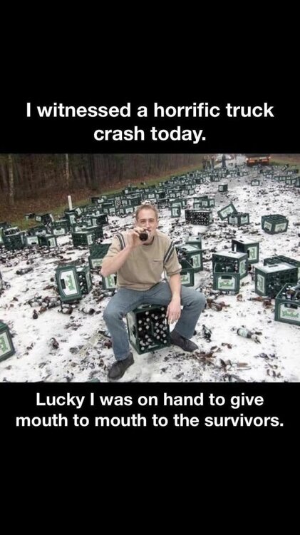 Budman was staggering home with a small bottle in his back pocket when he slipped and fell heavily. Struggling to his feet, he felt something wet running down his leg. “Please, God,” he implored, “let it be blood!”0 points