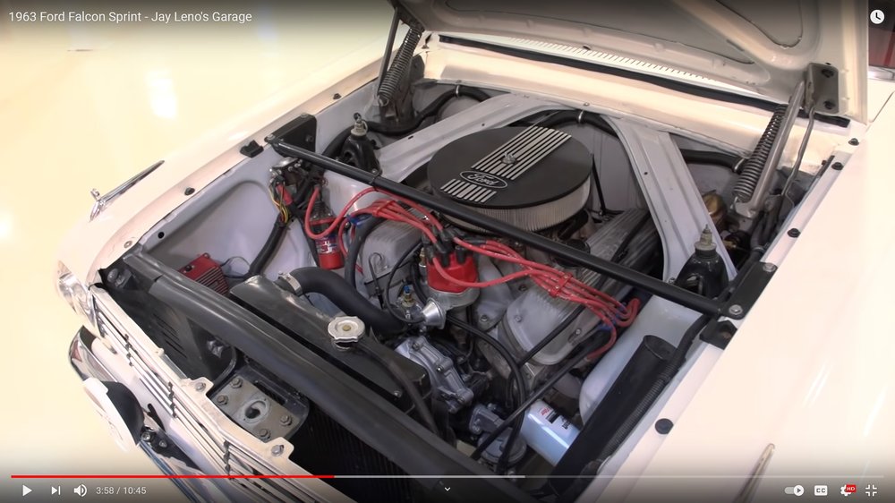 13. Nice Old school slapper bars and a straight axle. Not much room under the hood of those old Falcons with the factory shock towers. I had a 63 back in early 90s with a mildly built 1965 289 hipo stuffed in it. I wanted to put a nice set of headers on it but there was no way an off the shelf header would fit with the iron heads. Factory Iron 289 Hipo heads are probably a good 1 1/2" wider at the exhaust flanges on both sides. Stock mid to late 60s 289 Mustang iron exhaust manifolds were not horrible performance wise but they were not the best sounding. Jay Leno has a 63 with a bored and stroked 289 with aluminum heads on it but the custom low profile headers are still about 1/2 of an inch away from the shock towers.