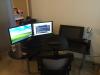 Here's my current setup since we moved earlier this year. Motherboard: Some Gigabyte brand, don't remember the model # CPU: Intel i5 3450 3.1 ghz 4-core Memory: 16gb, don't remember brand D: Graphics: GeForce GTX 660 PSU: Damn, my memory is slipping HDD: 1 100GB SSD for OS and apps, 1 2TB HDD for games, 2 2TB raid for data backup Keyboard: Das Keyboard 4 Mouse: Logitech G502, oh how I miss my g9. Headset: Sennheiser PC 350SE Monitors: 2 LG Flatron 22", one for gaming, one for work/netflix. 1 wacom cintiq 22HD for my 3D sculpting Maybe I should just upgrade my pc now that I think about it. We used to have our desks together at the old place, but didn't really have room to do that here. I should probably stop taking photos of my desk right after we move.
