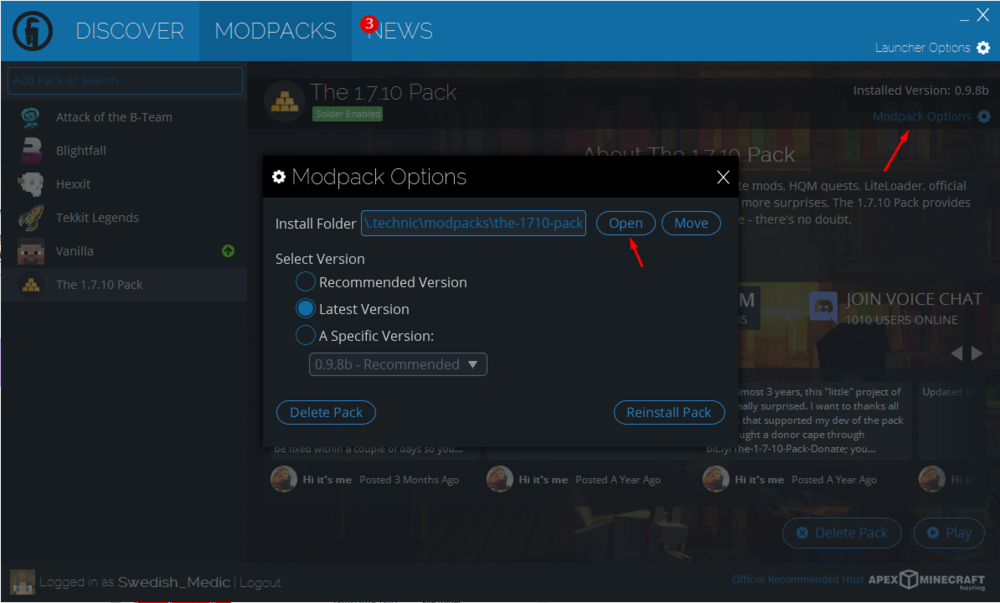 Installing Optifine can make your game unplayable on the server. That kind of sucks, especially since it's your fault. This happens for two reasons; 1. You didn't remove FastCraft., 2. You installed a version of Optifine which is too new. Here's some help to get Optifine working, if you're using something produced by Apple then please go away. Download Optifine D1 from here https://optifine.net/adloadx?f=OptiFine_1.7.10_HD_D1.jar (You can google yourself over there if you don't trust links. It's 2019, you shouldn't) Press your Windows key and type in %appdata% and then double click .technic . Then go to modpacks > the-1710-pack. If the previous step was too complicated you can simply open the launcher, press Modpack Options and then Open on the Install Folder line. Now find FastCraft by utilizing your search function and place it in a folder on your desktop or somewhere else, delete it if you think that's a good idea. You should find a .jar file and a .ini file. Take your OptiFine_1.7.10_HD_D1.jar file and add it to the folder mods. Now double click your Optifine file just for the fun of it. You're set. Go play with your zoom feature and not much else important. *Just to note. It is possible that other versions of Optifine below D5 work, I simply haven't tested them.