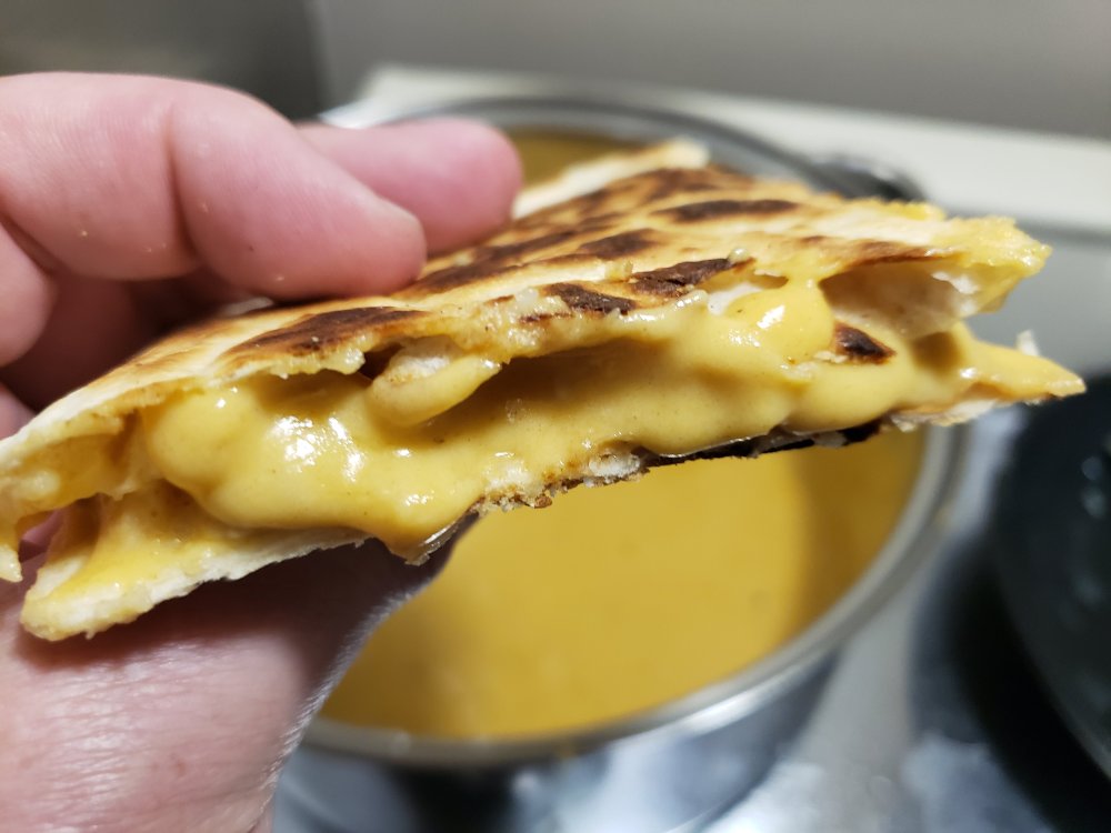 14. Cheesy Cheddar chicken quesadillas. Worth it to make the sauce from freshly grated. Bechamel was the first mother sauce I learned at about the age of 7.