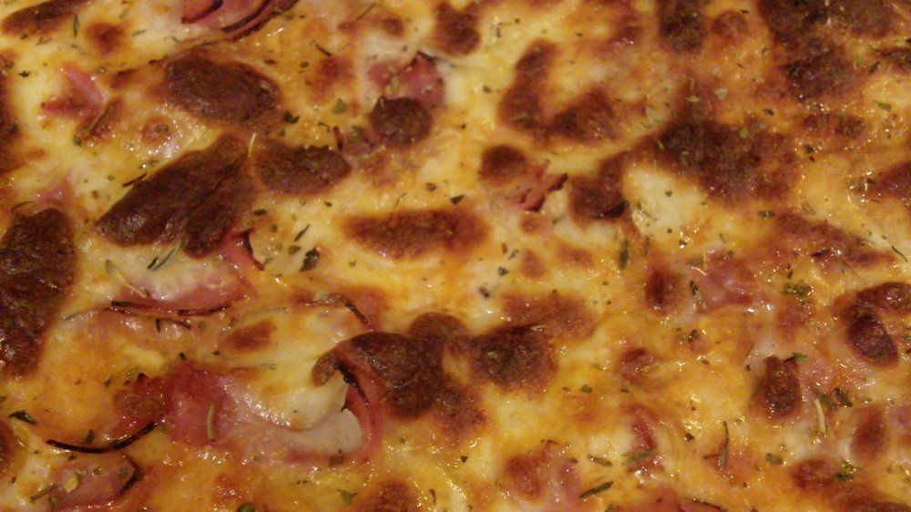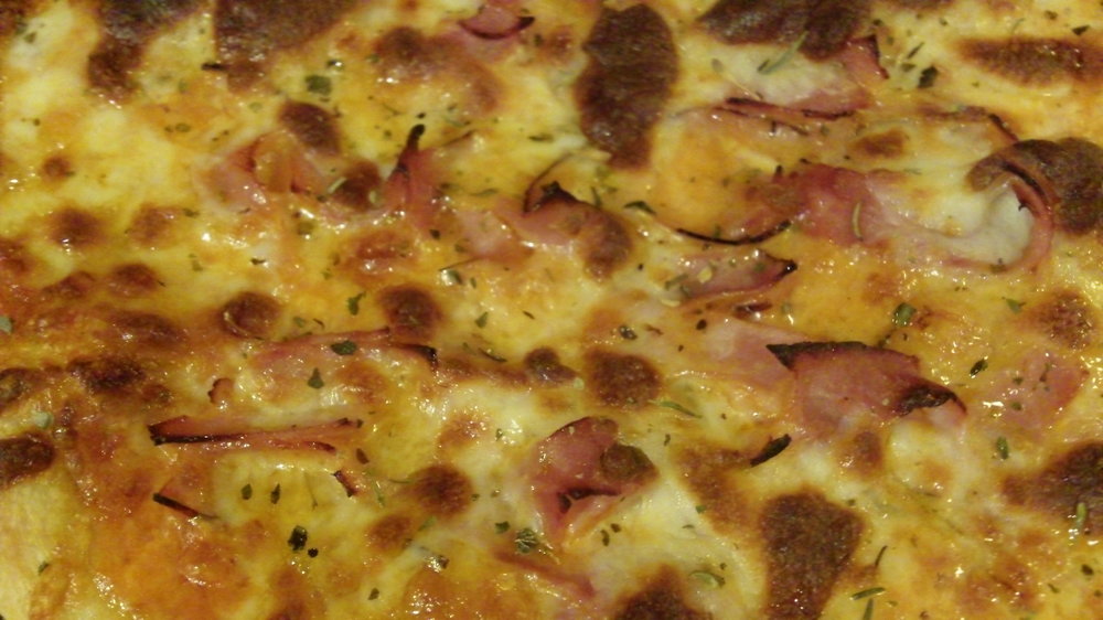 Ham & Cheese Pizza with Garlic Butter for Crust