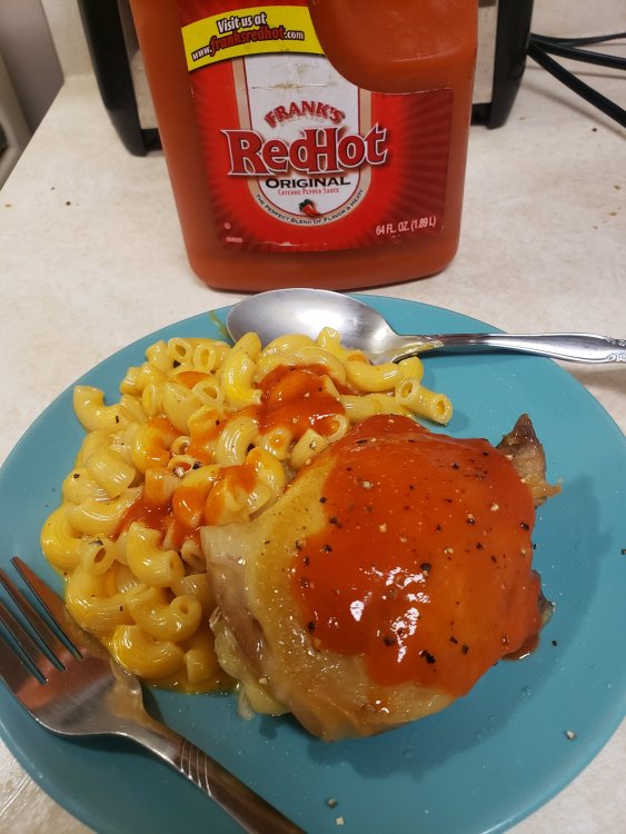 6. Buffalo chicken mac 'n cheese With a mix of Cheddar, Havarti & a little grated Parmesan. And Frank's Because I put that shit on everything!!