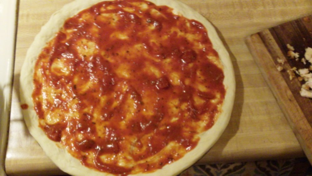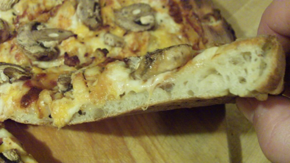 12. Turned out great; using bread flour this time resulted in a thicker crust compared to general purpose, even though I stretched rather thin. It also browned much more nicely.