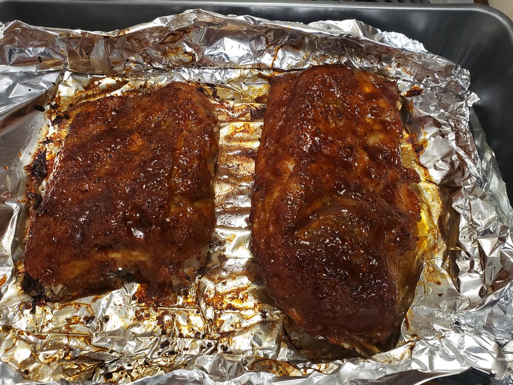 All you gotta do is wrap 'em in foil & baked at 250F for 2 or hours. Then throw some sauce on them & let them sit under the broiler for a few minutes. Easy peasey