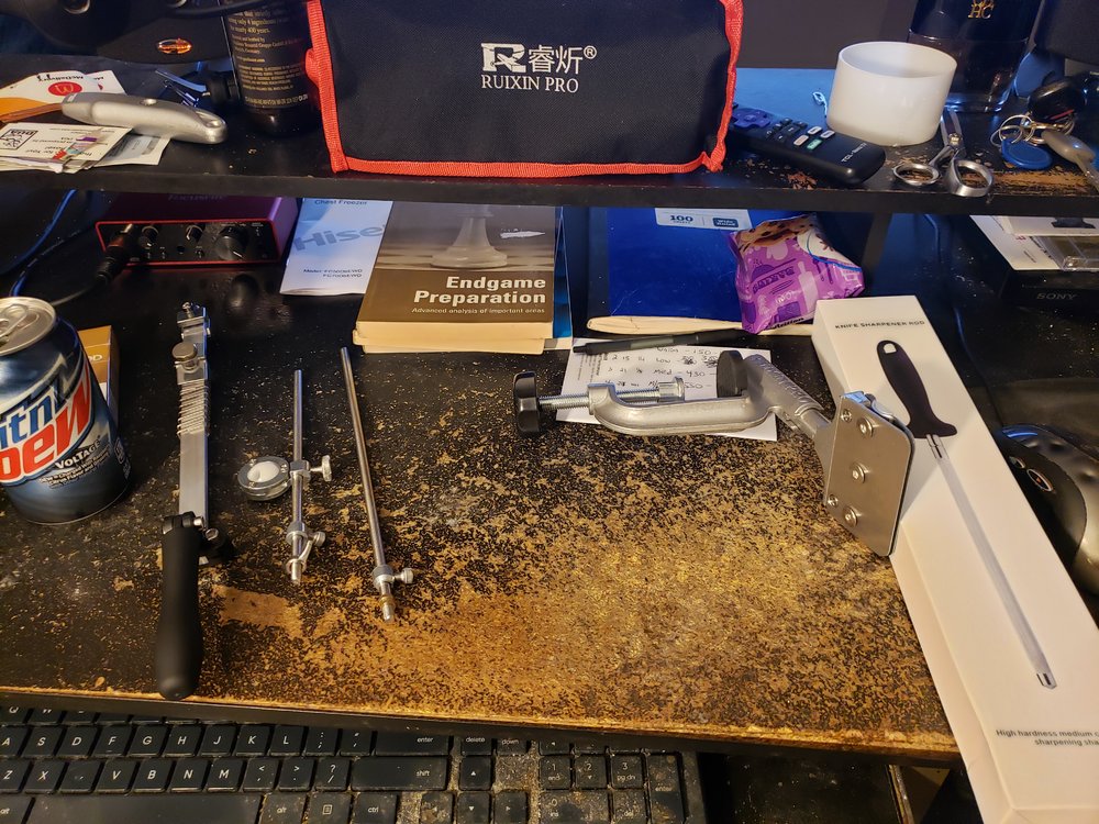 It's convenient using some of the other cast iron to buffer the temperature stability while I bake; You want to get the oven as hot as possible for the pie, which also seasons any cast iron in there, as the smoke point of the soybean oil I use to season is around 450F & the oven is usually between 550 & 610. Been thinking of stripping down a pan & reseasoning it with refined Avacado oil as it's smoke point is ~520F, for a possibly more durable season. With the new chest freezer & prepping meats, breads, sauces, etc., I look for reasons to season, baking as often as is feasible to frying; which also has the added benefit of being healthier; or at lest less unhealthy. And cast iron is so great because it's tough, easy to maintain & holds & distributes heat so nice & evenly. Plus it's handsome, too. Great, now I'm hungry again.