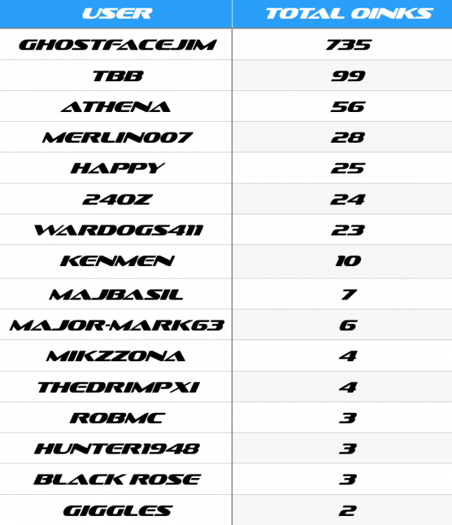 3) We will be having some special challenges over the final 10 days, the winners of those challenges will get extra oinks!