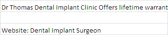 Dr Thomas Dental Implant Clinic Offers lifetime warranty. Offers include long installment and high success rate.