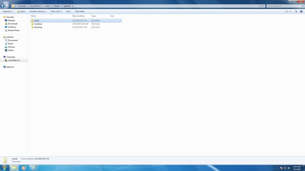 Step 2 ..... Once you have clicked on Roaming it will take you to your local disk. Now that you are in your local disk you will need to open your AppData folder.
