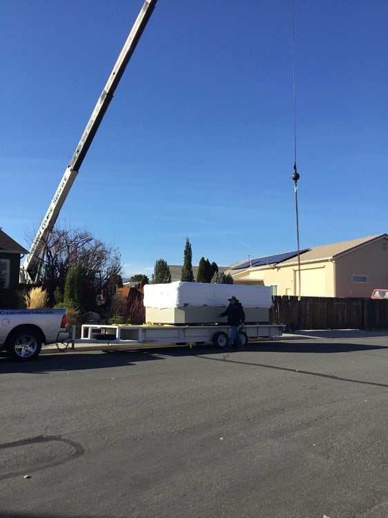 Flying swim spa you say! After enjoying our doughboy pool for the last 18 years, we gave it to some friends. It’s been replaced by a brand new swim spa. Got to admit, it sure takes the ache out of these old bones!