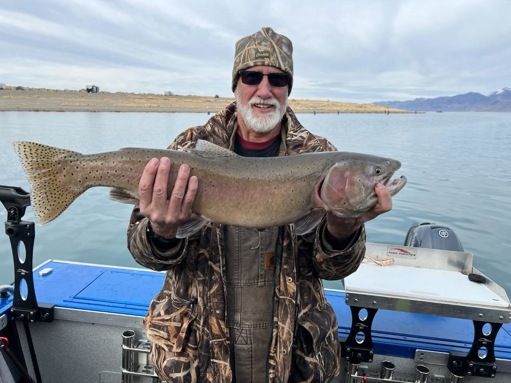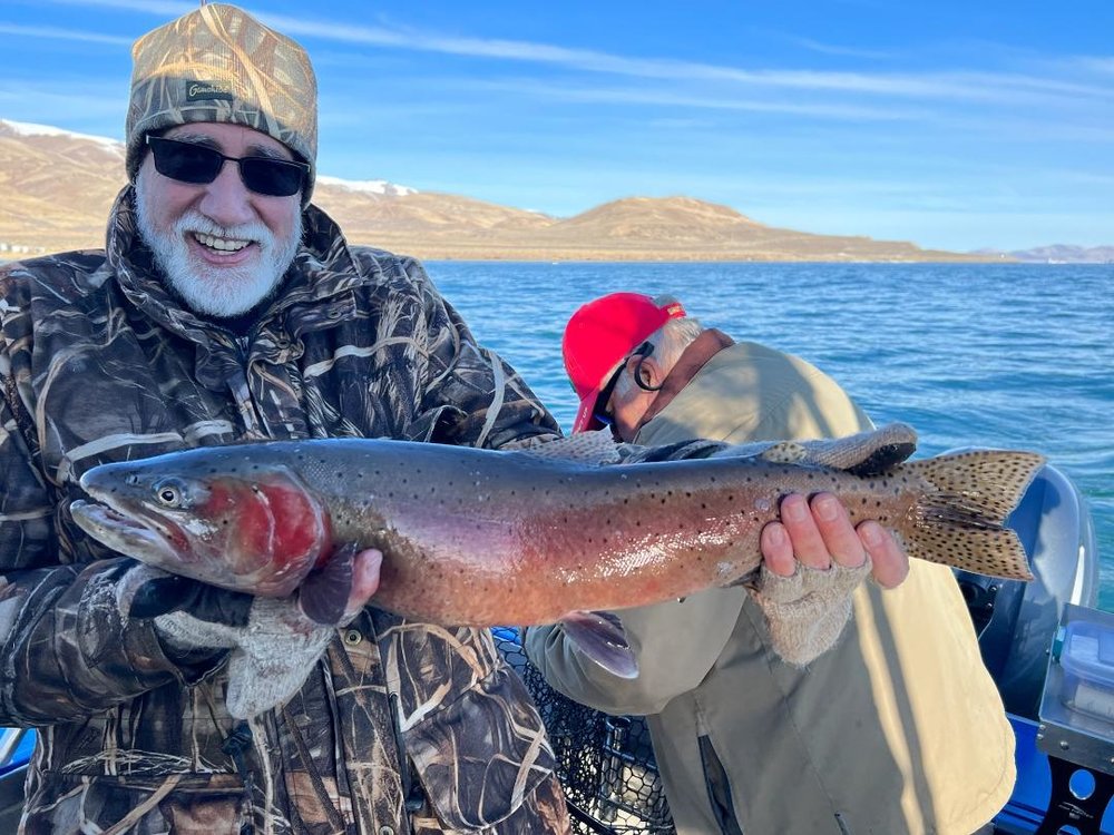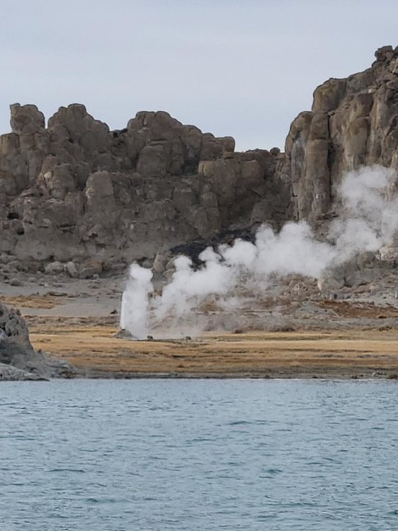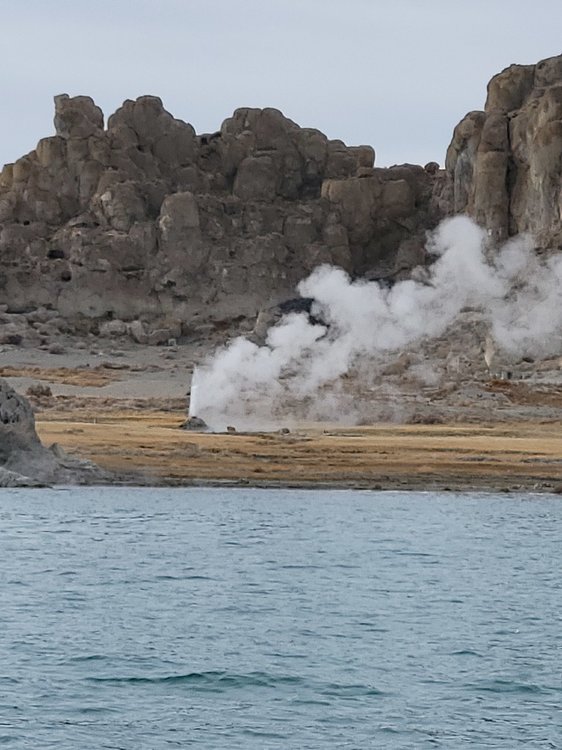 My neighbor took me fishing yesterday. Pyramid Lake is about 45 minutes from home. This lake is a world class fishin spot. Lahonton Cutthroat Trout get as big as 50 pounds! The last fish caught by me was a ten pounder, what a thrill!! We landed about fifteen, all catch and release. Those two pictures are of a steam vent at the north end of the lake.