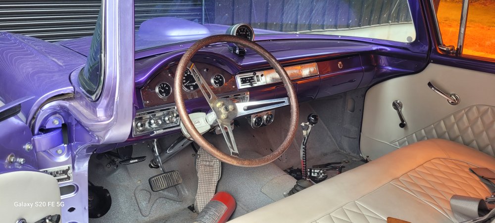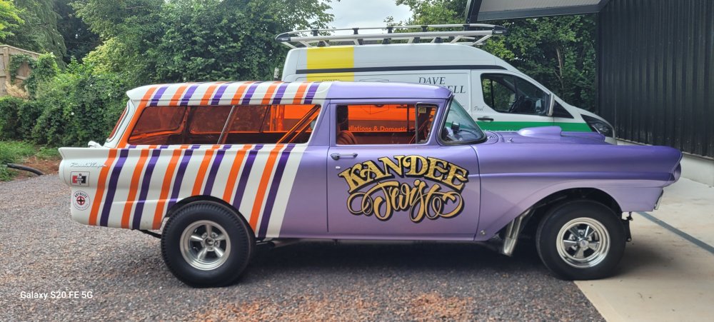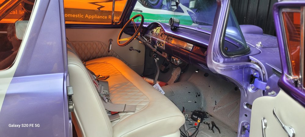 I went there this afternoon to connect and set up the roller shutter doors. But as usual on this site I got distracted. Look at this beauty, If i remember correctly it's a '57 Ford Ranch wagen that was customised in the USA and was imported and is used as a drag racing car over here. He does drive this on the road occasionally even with those tyres lol. This guy is my kind of customer -