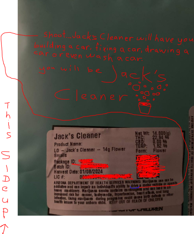 25. hahahahaha Smart man. Plus Popcorn is bad for you. Weed is not! Right now Jacks Cleaner and I hare hanging out. If anyone's ever done Jacks Herer, this Jack's Cleaner seems much stronger. WOW! I am ready to fix something... so damn focused. Look how good my damn heandwriting is... calm as a spiced up flaming cucumber.