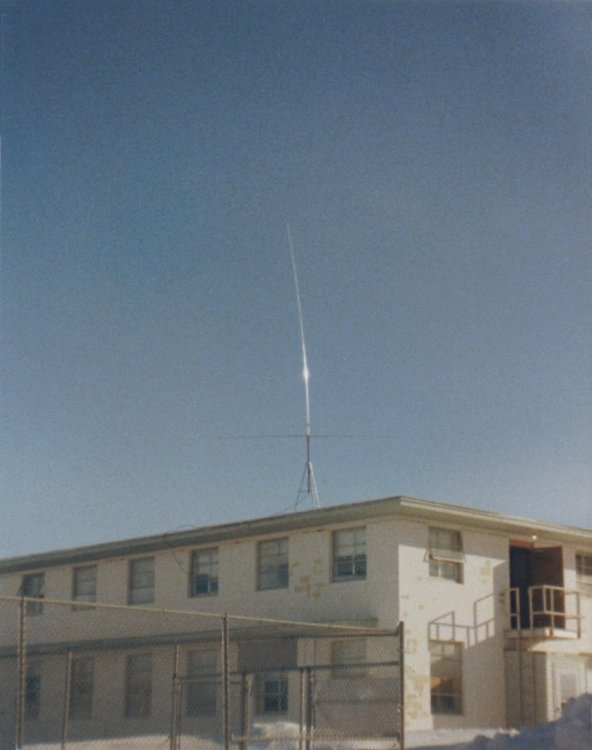 The sense of sadness I have over this picture is palpable. This is the dorm where I lived while stationed at the 786th Radar Squadron, Minot Air Force Station, North Dakota. I risked my life, literally, on this day to get to my room which was on the second floor. The face of the building you are seeing faces south. My room was the last three windows on the second floor on the north side of the building in the north west corner. At that end of the building, the floor had rotted through and I could see down to the first floor. See the antenna tripod on the roof? That actually belongs to me. I mounted it up there in January of 1978 at 0°F with a -10°F windchill, and then installed a HyGain Penetrator CB antenna on it; I couldn't believe they let me do it, but honestly I don't think they had a clue what I was proposing. Still, they didn't say a word once it went up. Picture in a moment. I could talk to anyone with a CB for as far as the eye could see. My view was the spectacular and unobstructed expanse of the North Dakota plains. I was a member of the site fire team, and the projectionist for our little makeshift movie theater. When officially on duty, I was a part of the team that maintained the most bad-ass early warning search radar system in all of North Dakota, and only a handful of them in the world. It was one of the coolest things I've ever done in my life and something that gives me incredible pride. Now the entire site is in such complete decay that I just want to cry. You can go home, but you can never go home. This will be the topic of an upcoming video. Back in the day. For me, that was 1977 - 1979. The site operated with many other radar systems from April 1953 - July 1979. I left in September 1979. The mighty AN/FPS-27A Aircraft Control and Early Warning Search Radar (4 stories) and its companion AN/FPS-26A Heigh Finder radar (2 stories). The Tranquility Base CB base station antenna, a HyGain Penetrator omni-directional 22' mast with four 9' radials. Steampunk. The site was heated by massive steam boilers and there were above-ground steam lines running everywhere. A curious juxtaposition of old school steampunk and the once state of the art cold war early warning AN/FPS-27A tech. All that remains of the once-mighty AN/FPS-27A (Verizon operates the new cell tower west of the remains of the radar towers).