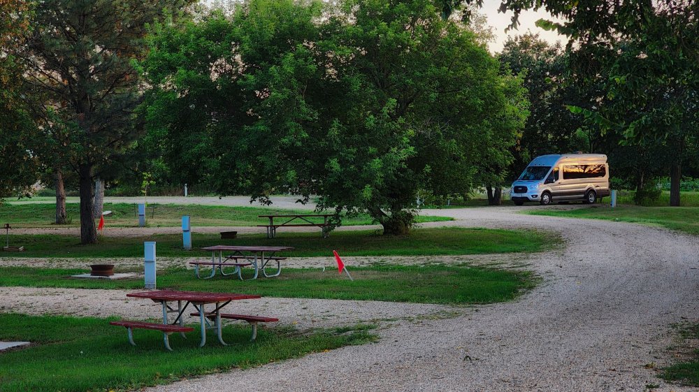 Old Settler's Park in Burlington, ND was a quaint little city RV park that I had almost all to myself for the few days I was there. It's just a short hop, skip, and jump from Minot and perhaps one of the best kept secrets for places to stay when traveling through the area. 50/30/20amp power, shared water spigots, and a kind of rustic but clean restroom with a shower.