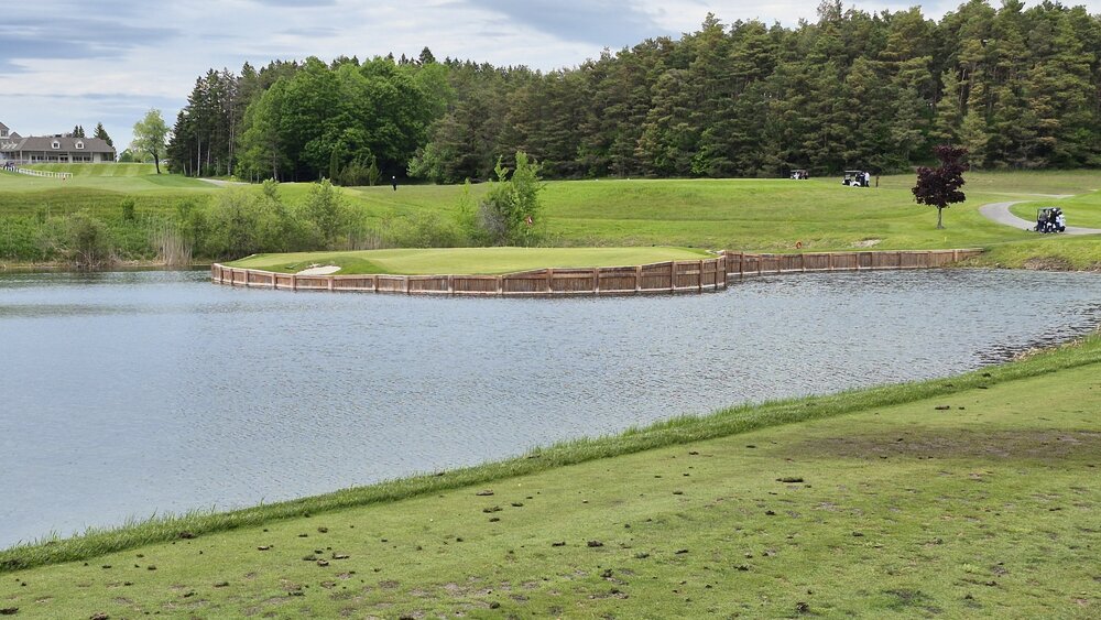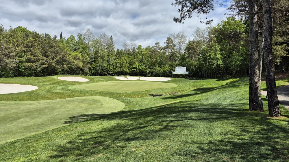 This past weekend me and a few buds went and played a bucket list course here in Ontario called Wooden Sticks. It has 12 replica PGA holes, some from Augusta, St Andrews, Troon, and the famous 17th Island Green of Saginaw! Course was in amazing condition, was a bit windy and cool out but we managed! I shot a 92, not bad for a long course and 1st time playing it id say! The highlight is the 17th hole, a replica of the 17th Island Green at TPC Sawgrass. IF you make the green on 1st shot and hold the green you press a button and speakers up in the trees start cheering for you! I made it!!! 144yd 8 iron into a steady wind, dropped about 15-20 ft from pin, missed my birdie but got the par! 2 of the 4 of us made it on!