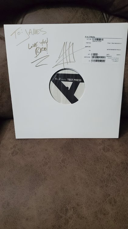 19. Went to hang with the lead singer of my fav band Monster Truck tonight! We have become good friends and hang out every week or so, tonight he surprised me with a 1 of only 6 pressed test vinyl for their album True Rockers. This sucker will get 1 spin on my turntable then into a frame and on the wall!!! Next concert Ill get the rest of the band to sign the sleeve!