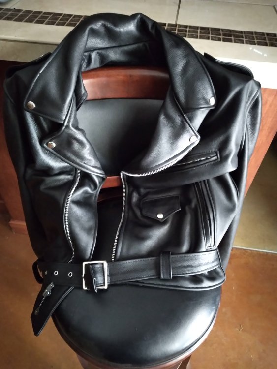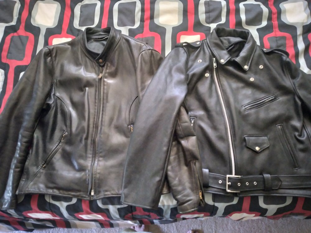 Been wearing an American made leather jacket for the last 30ys. Wanted to buy a new jacket, in the Marlon Brando style, like the Bates Highwayman. US1leathers.com is still in business (moved a couple miles down the road). Just received their steerhide 370, and couldn't be happier. 368 on the left, brand new 370 steerhide on the right. Central pix is new 370 after mink oiling.