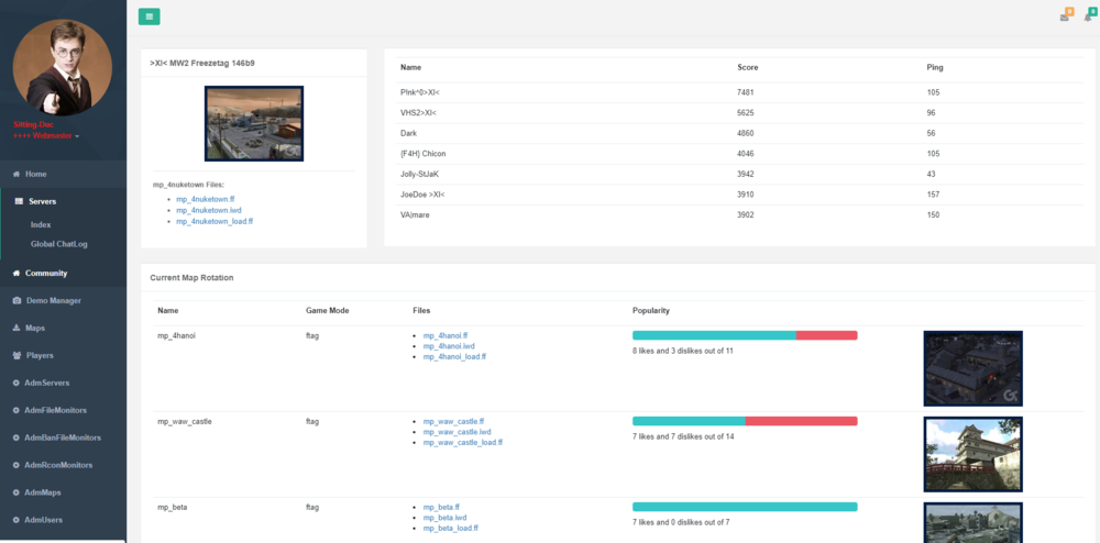 18. I have also updated the portal as part of this to display the maps and the votes. You can access it here: https://portal.xtremeidiots.com/ Either view the maps index and search for the map you are looking for or to view the whole rotation click on servers => index and then select the 'server info' next to the server you want to view. You should then get something like: A player can only vote once on a map, subsequent votes either overwrite (if you go from a !like to !dislike) or are ignored. Duc EDIT: I should also say that the command is available across all COD servers.