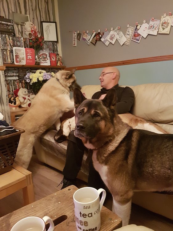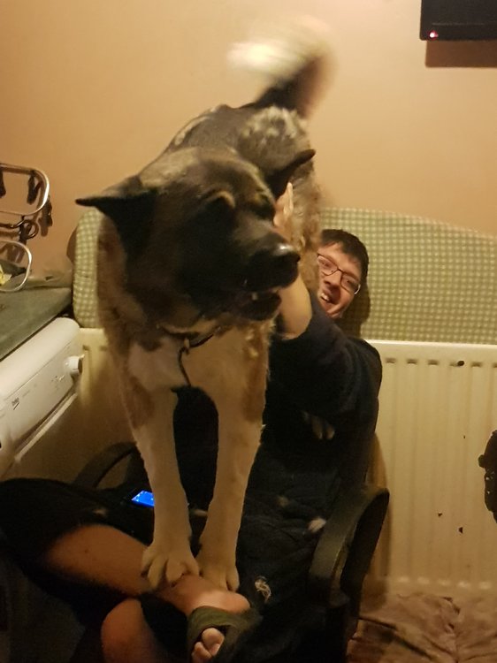 20. The same Dog trying to be a Lap dog with my Son followed by me getting swamped with all 3