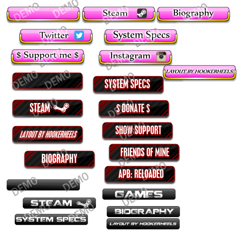 I've been shopping for a custom banner/logo for my gaming profiles, I currently use this one I made, thinking I'd like the isometric design, I uh, yeah, no.. A little risque is fine, but nothing over the top raunchy, deffo more classy than trashy is what I'm thinking. ('HookerHeels' being the name of course) I'm not asking for it completely free, I'll gift ya a game on Steam or make buttons for profiles/etc or whatever. (a demo at the bottom of this post of my work) I've asked around the web and noone seems interested, maybe some talented artists on here might be. I'm thinking something black and white, maybe a little splash of red, like these, where the heel is part of the design. And what I do not want is something that makes the shoe made out of the words, like this This is my own work, not the most spectacular thing in the world, but I like to think I did a good job