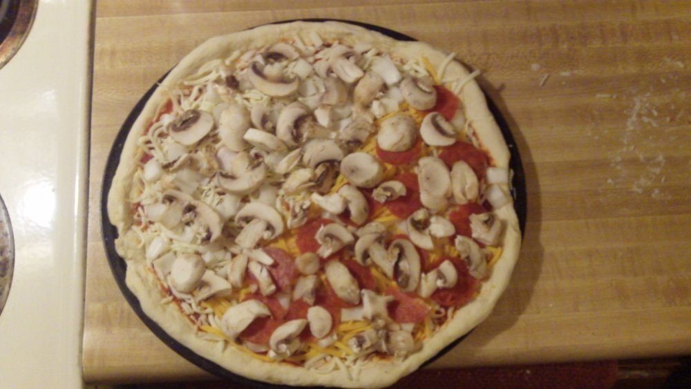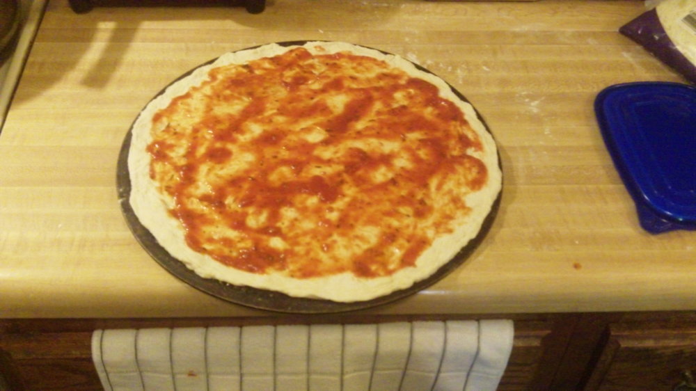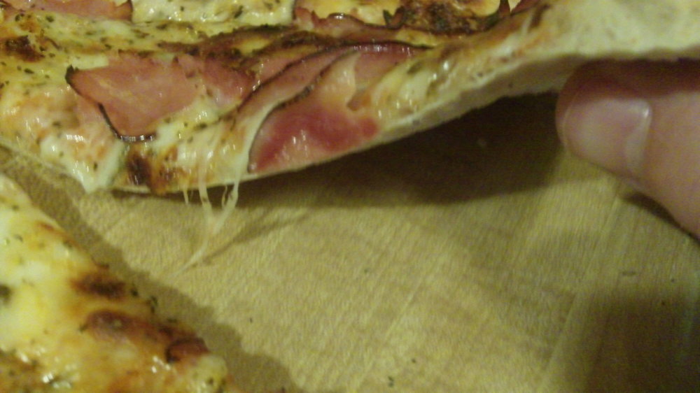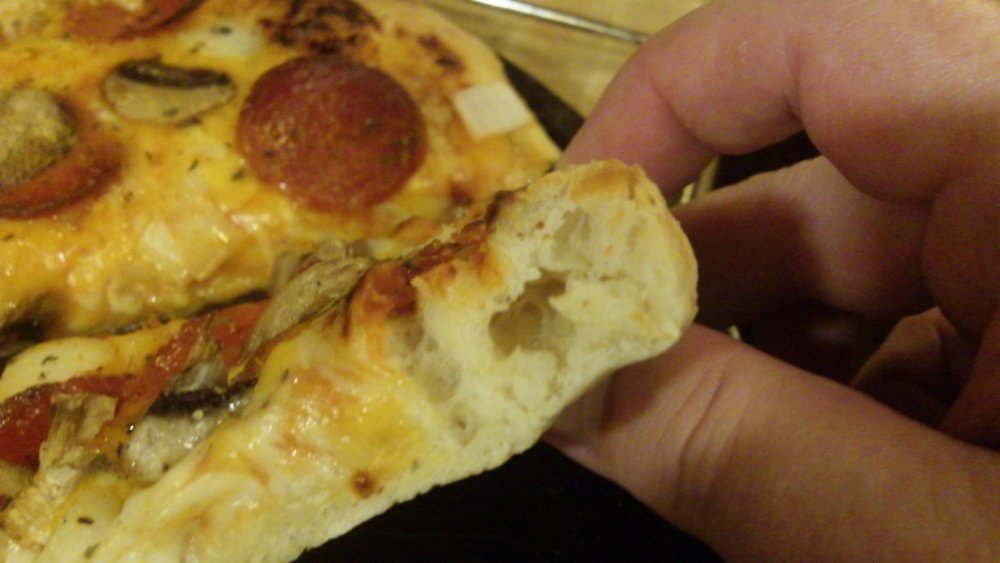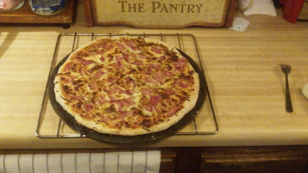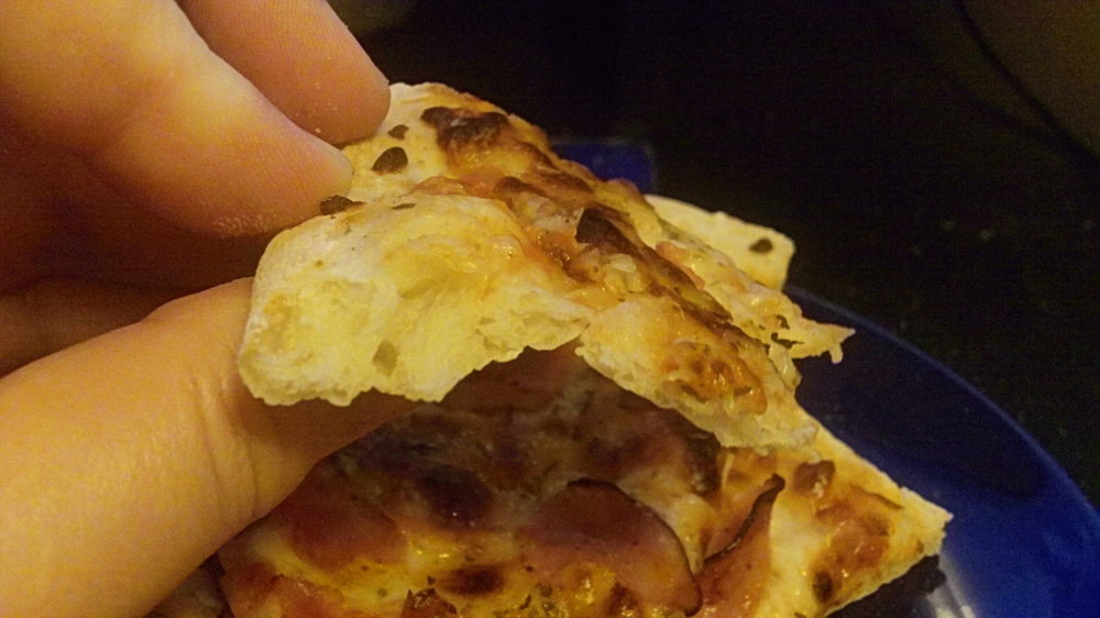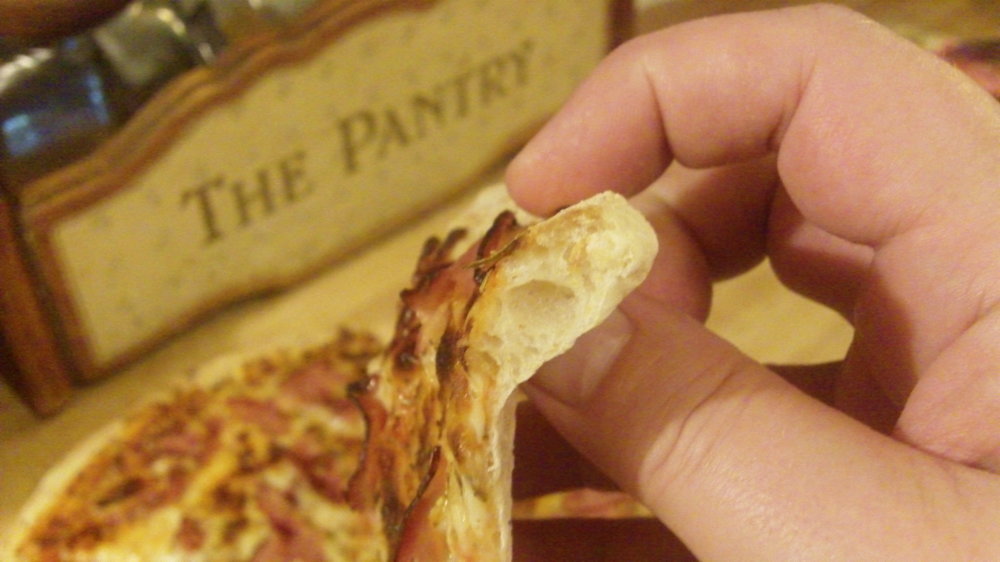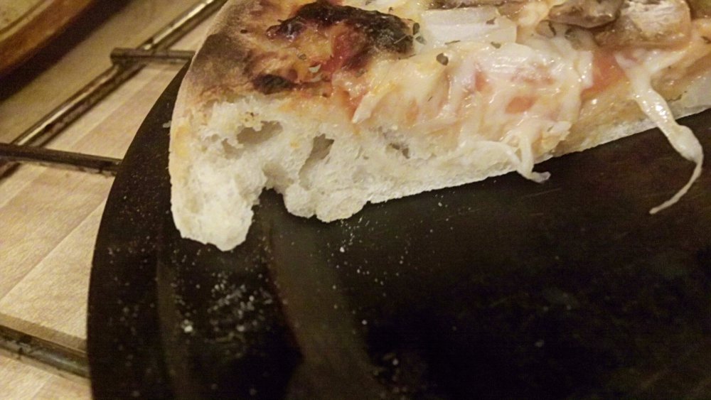 Turned out exactly as I like; You can tell the dough was given 2 days to develop in the fridge before being taken out to rise by the large air pockets in the crust and the airy consistency. =)